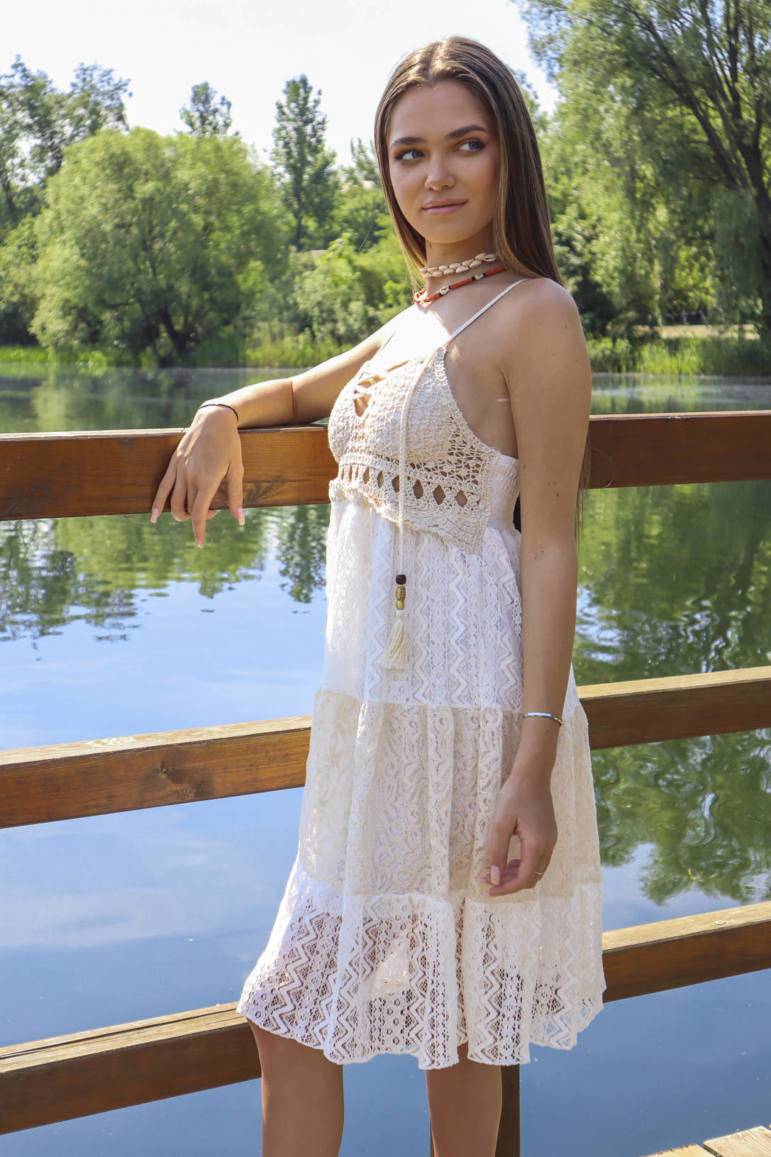 SUKIENKA KORONKOWA W STYLU BOHO-BIAŁO-BEŻOWA