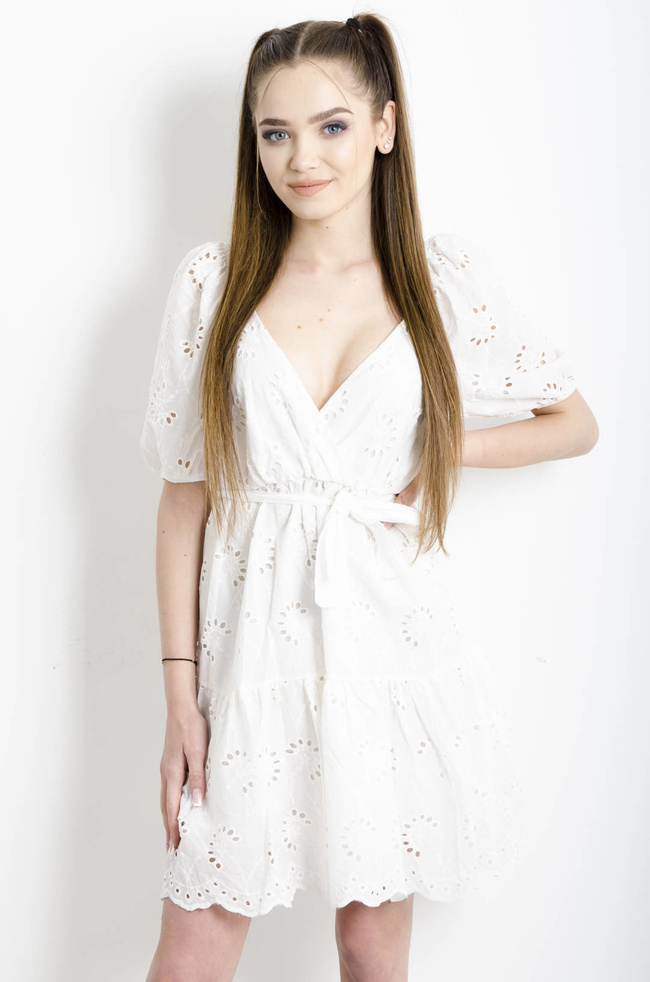 SUKIENKA AŻUROWA Z PASKIEM- BIAŁA