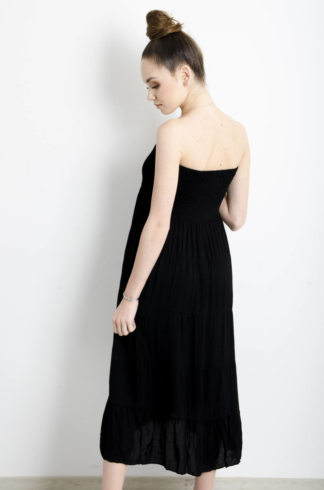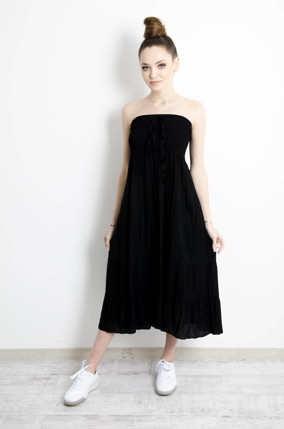 SUKIENKA MIDI Z GUMĄ WIĄZANA - CZARNA