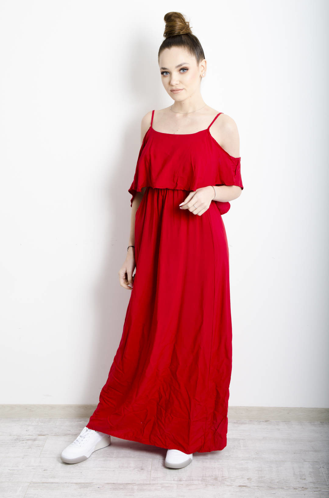 SUKIENKA HISZPANKA MAXI NA RAMIĄCZKA- CZERWONA