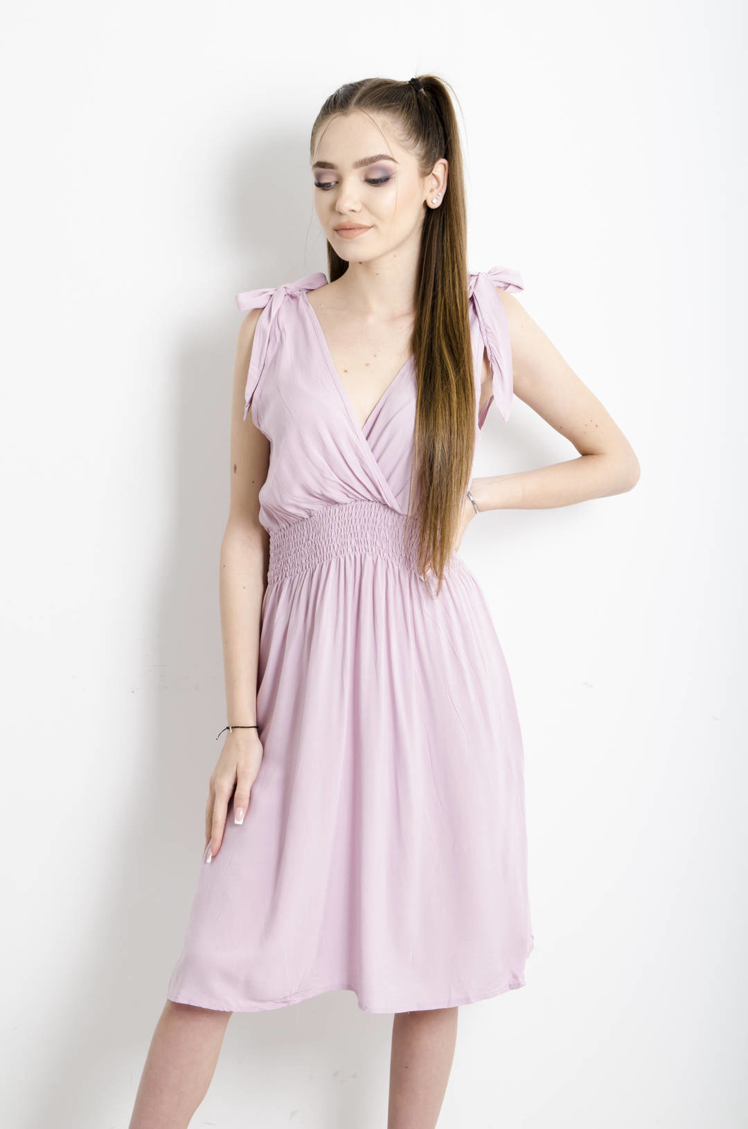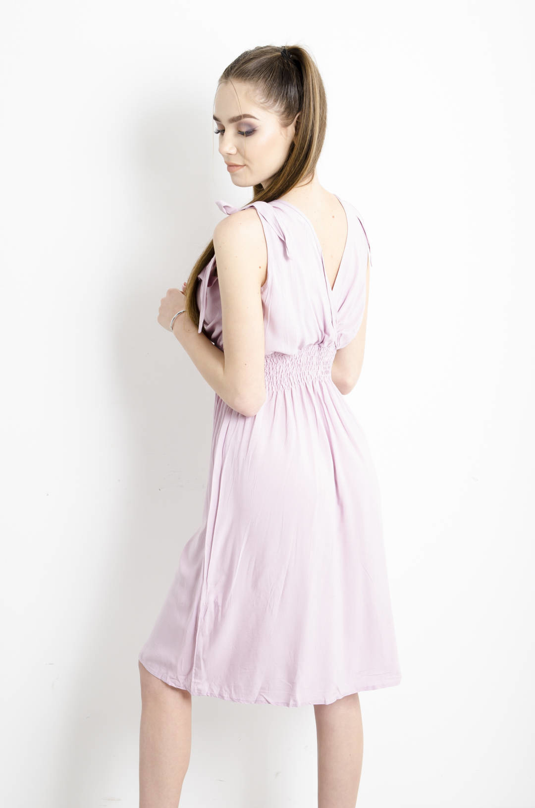 SUKIENKA Z WIĄZANIAMI PRZY RĘKAWACH- RÓŻOWA