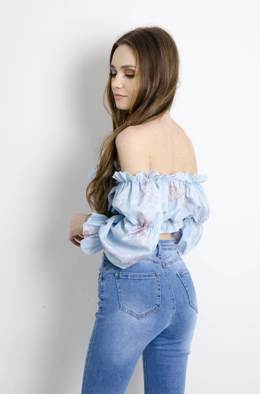 BLUZKA HISZPANKA NIEBIESKA W KWIATY