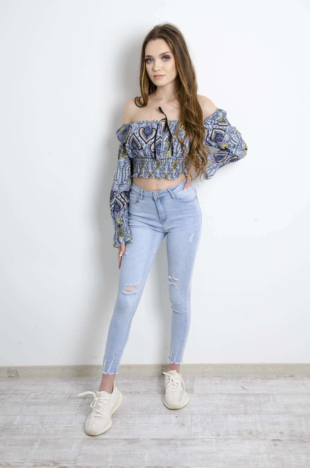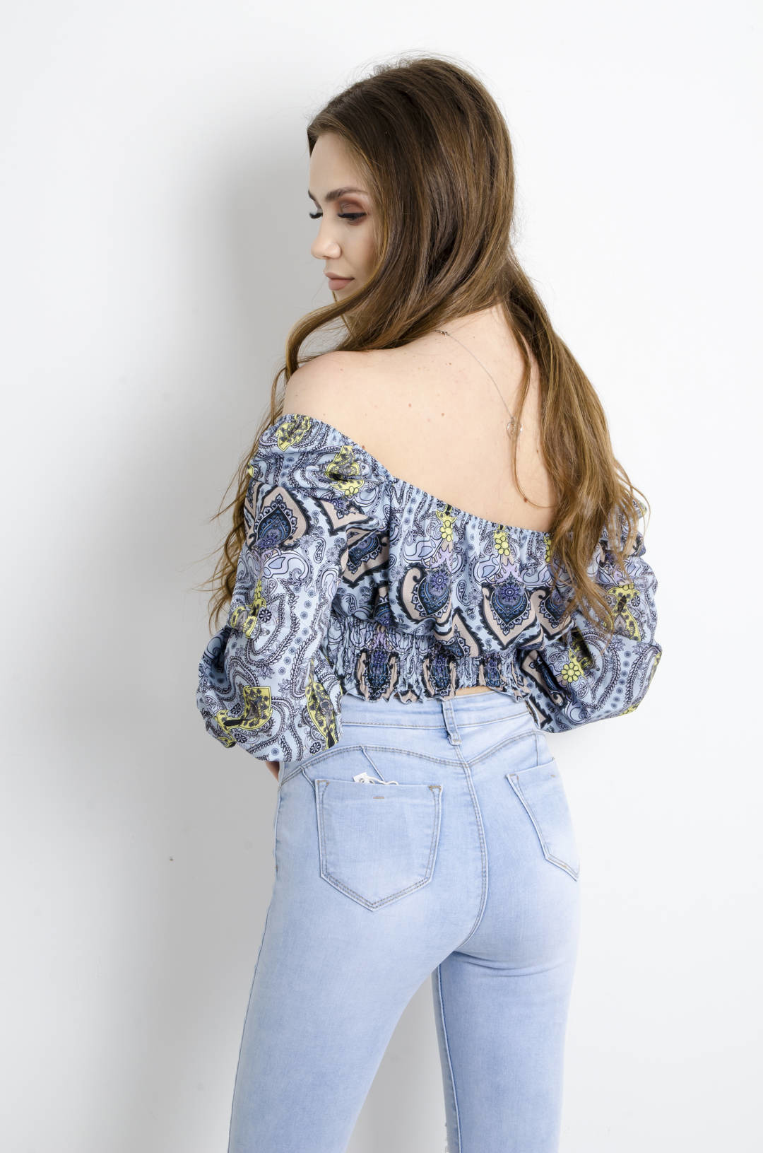 BLUZKA HISZPANKA NIEBIESKA Z WIĄZANIEM