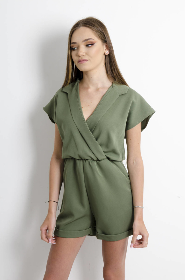 KOMBINEZON ELEGANCKI Z KOŁNIERZEM ZIELONY