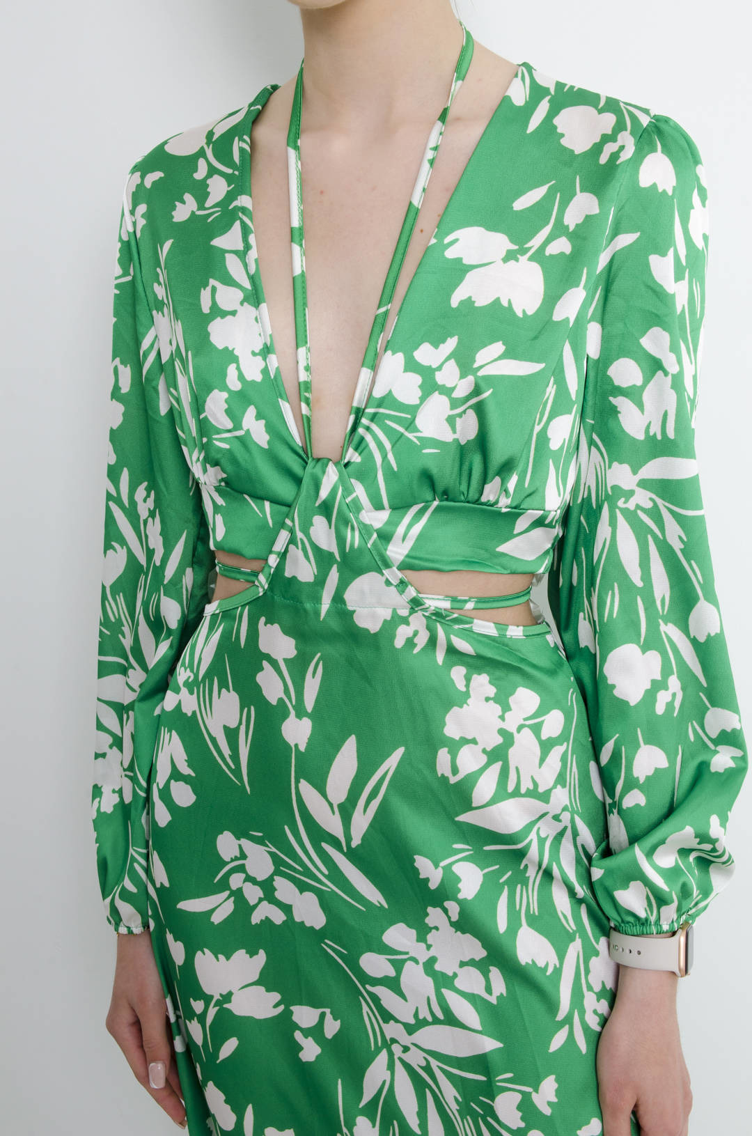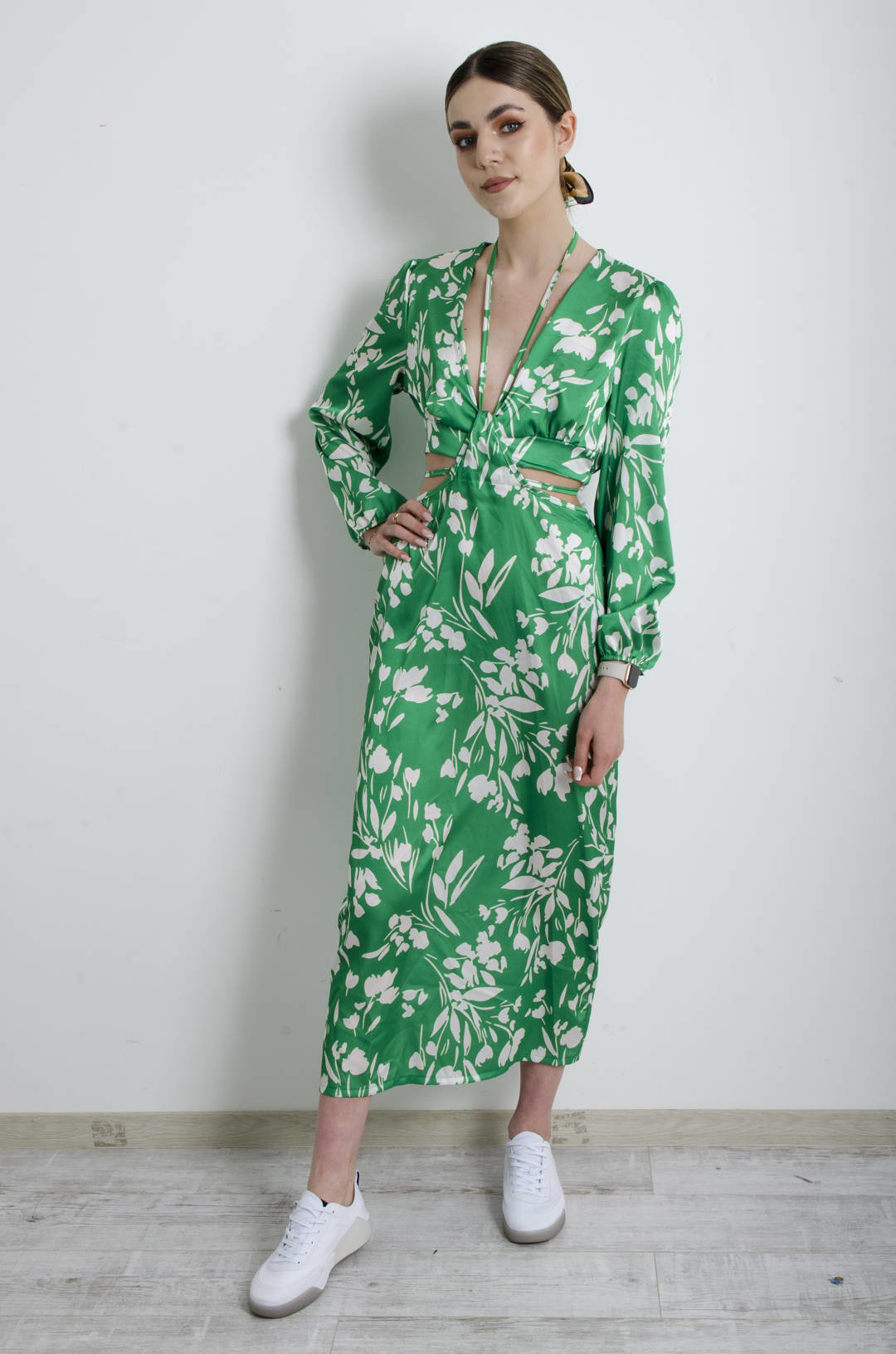 SUKIENKA ZIELONA W KWIATY Z WYCIĘCIEM