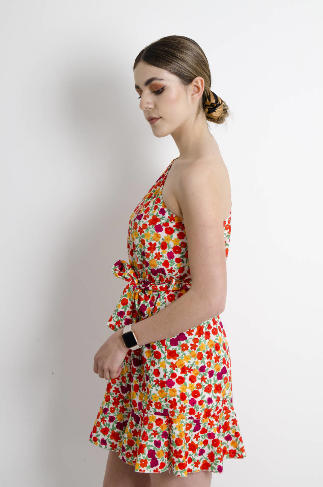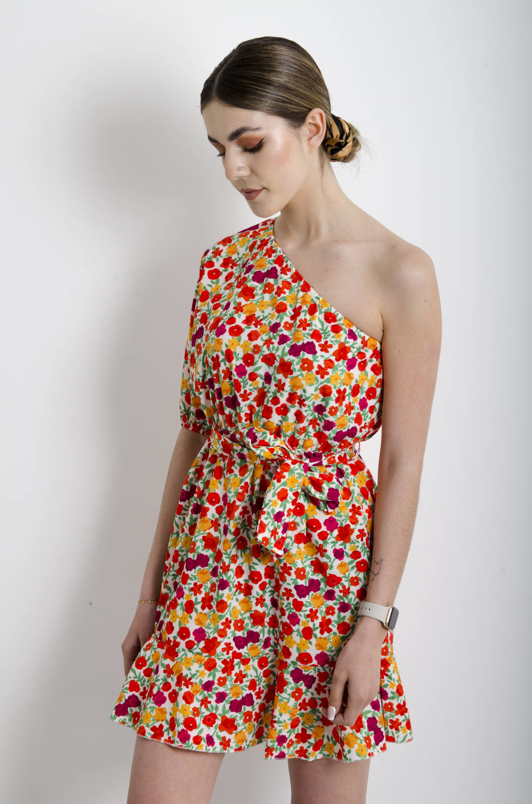 SUKIENKA W KWIATY NA JEDNO RAMIĘ -BIAŁA