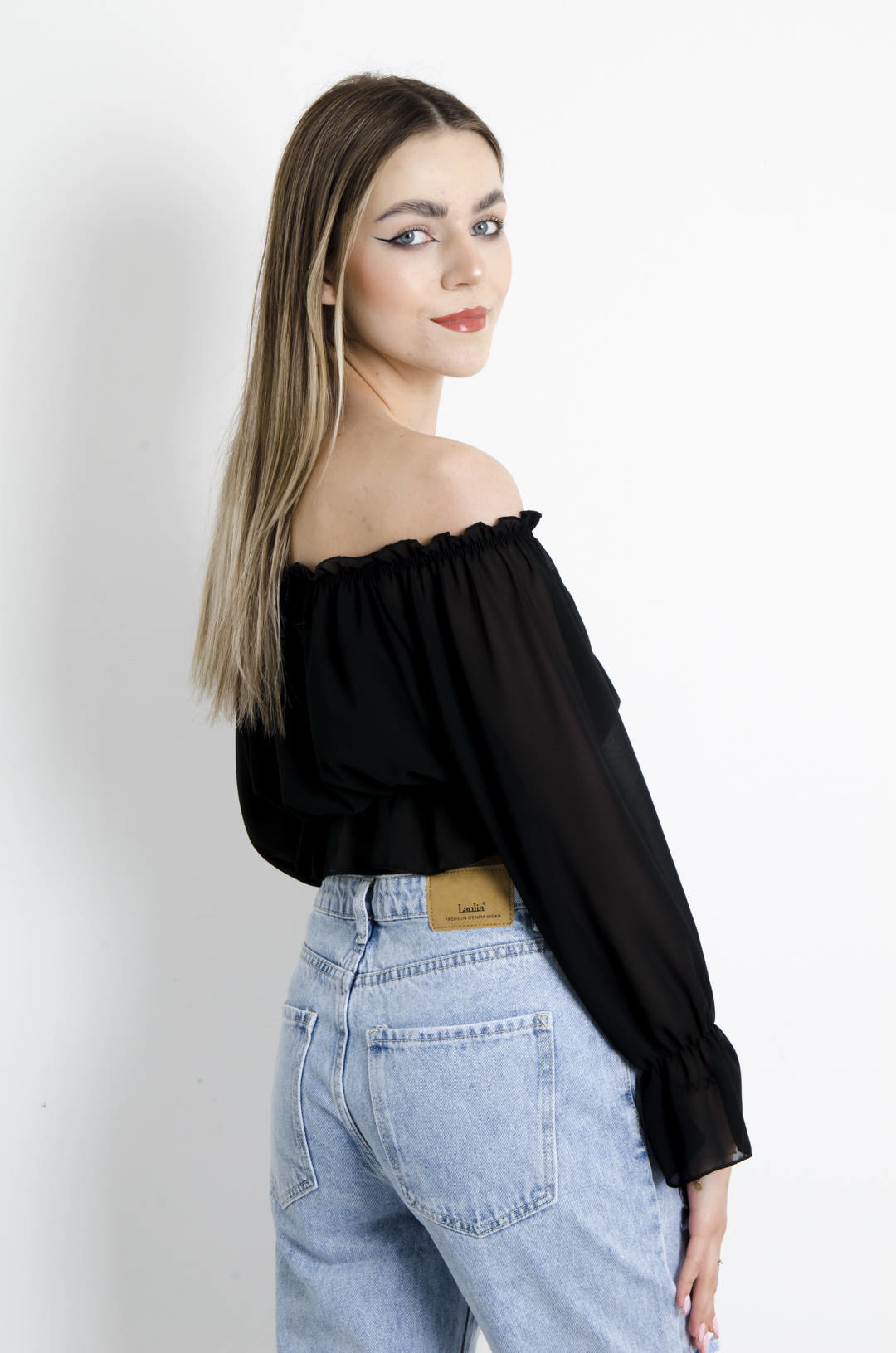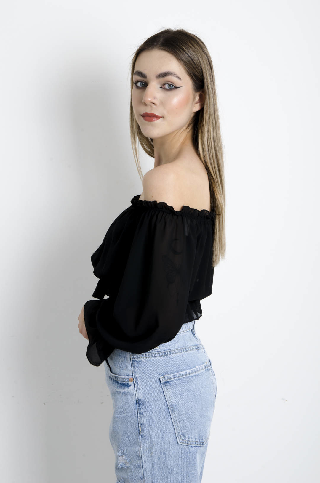 BLUZKA HISZPANKA NA DŁUGI RĘKAW - CZARNA