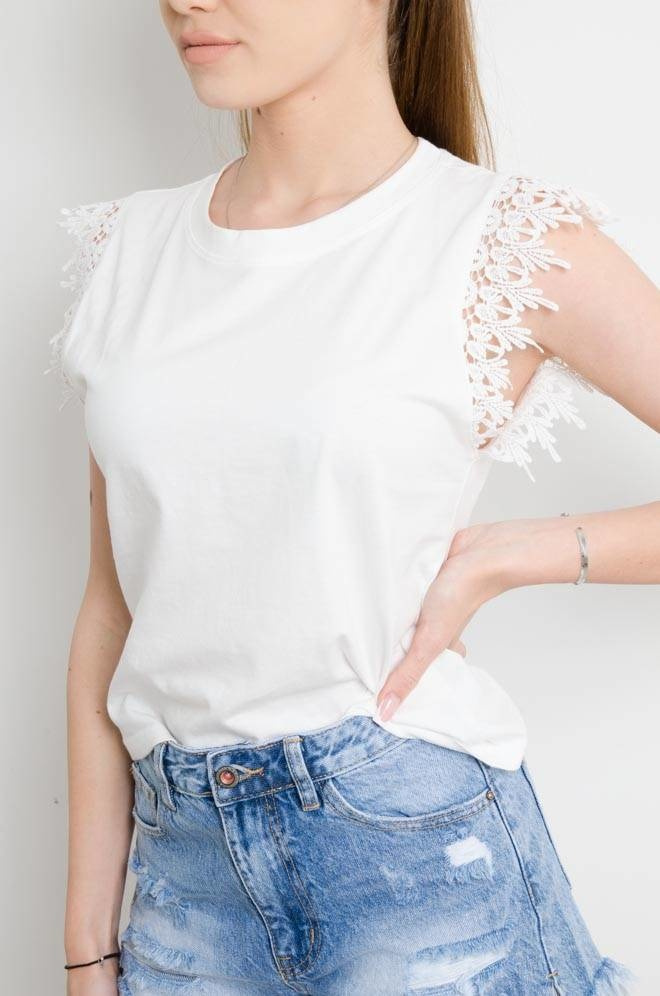 BLUZKA DZIANINOWA AŻUROWE REKAWY- BIAŁA