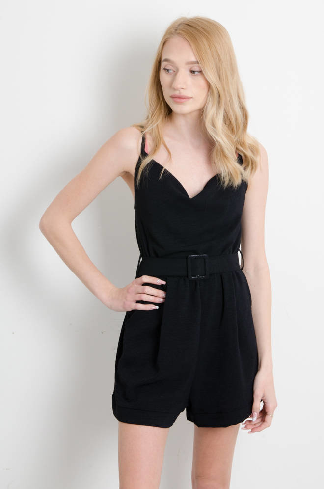 KOMBINEZON NA CIENKICH RAMIĄCZKACH Z PASKIEM- CZARNY