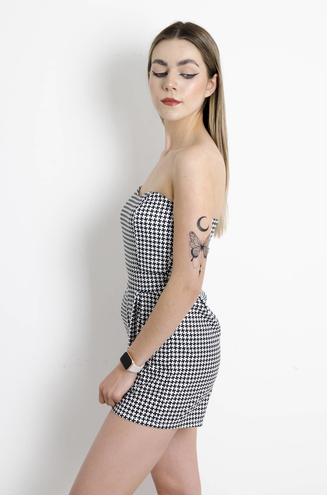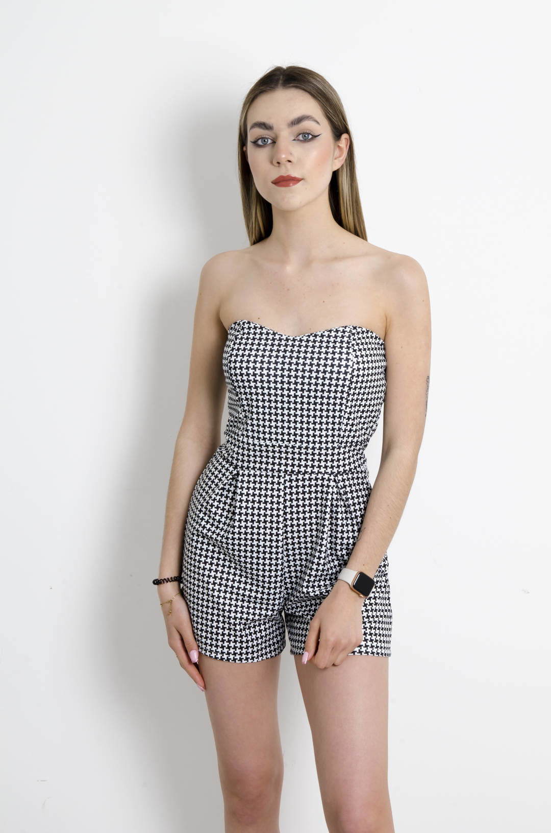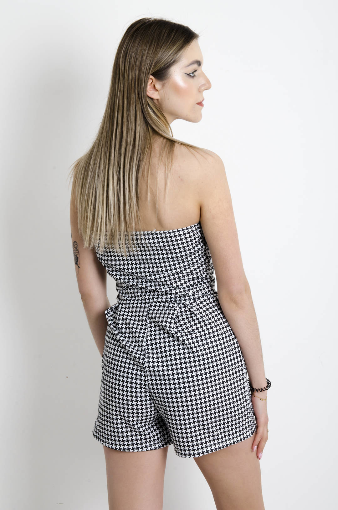 KOMBINEZON GORSETOWY W PEPITKĘ- CZARNY