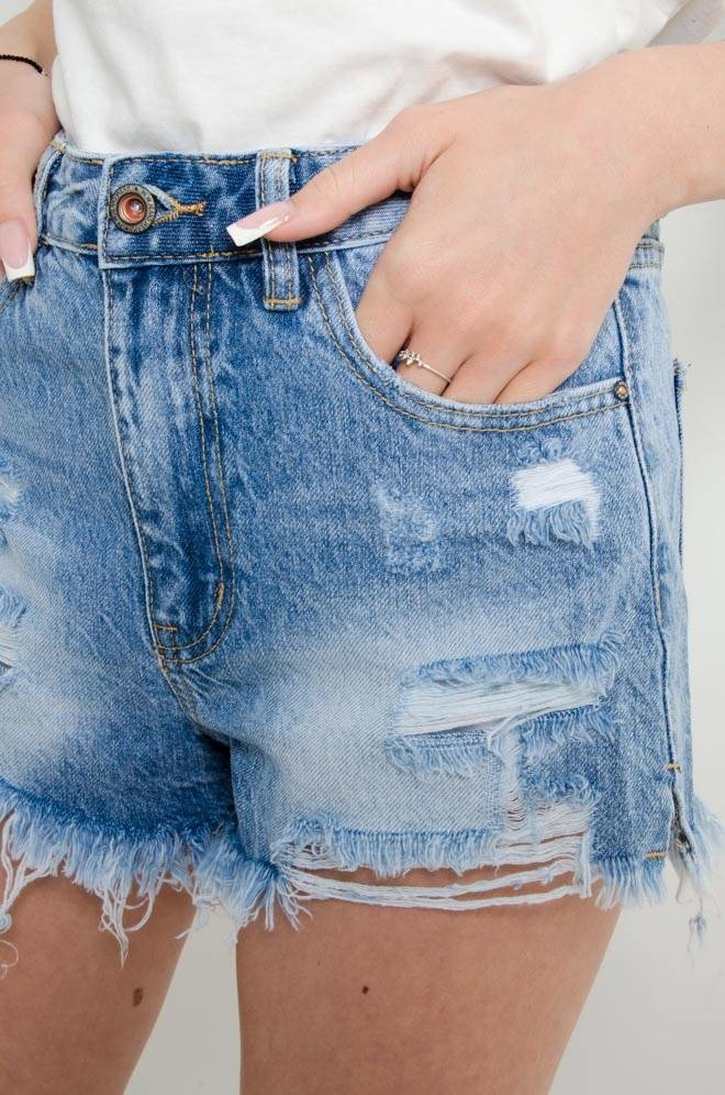 SZORTY JEANSOWE Z SZARPANIAMI- WYSOKI STAN