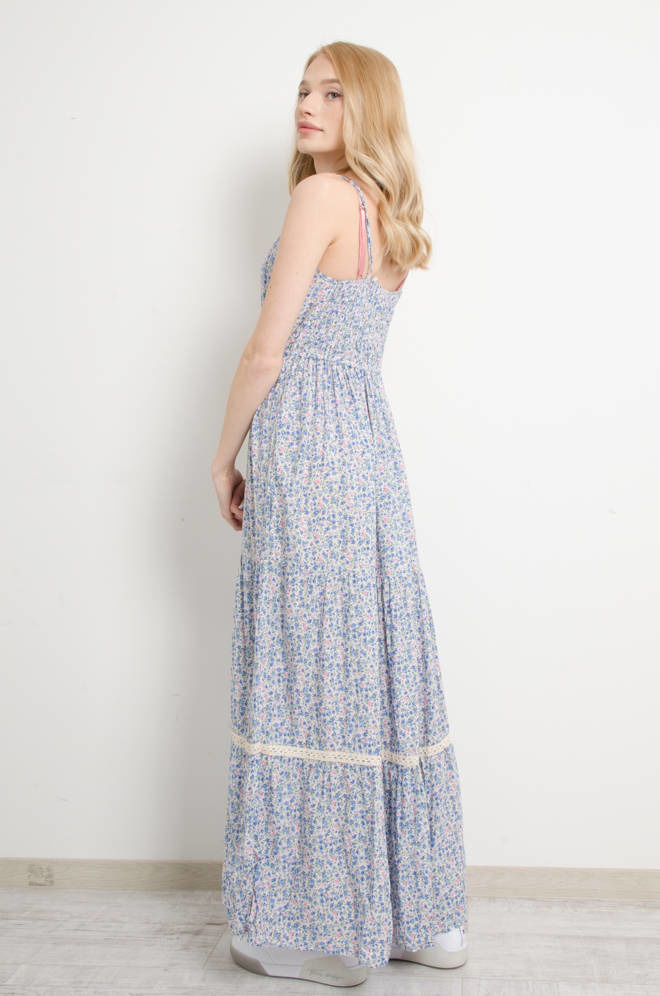 SUKIENKA W KWIATY NA CIENKICH RAMIĄCZKACH MAXI - NIEBIESKA