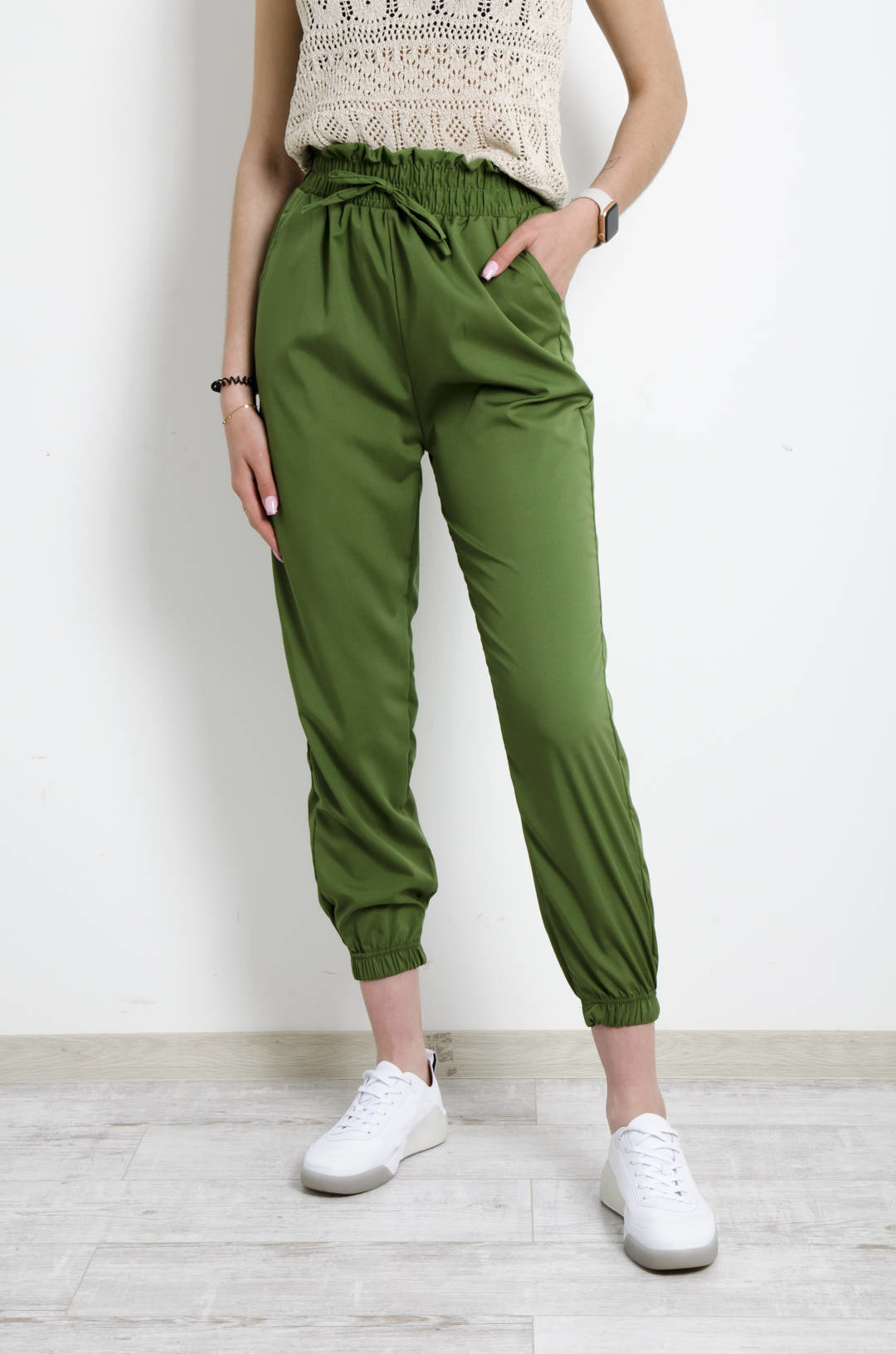 SPODNIE MATERIAŁOWE Z GUMĄ W PASIE- ZIELONE
