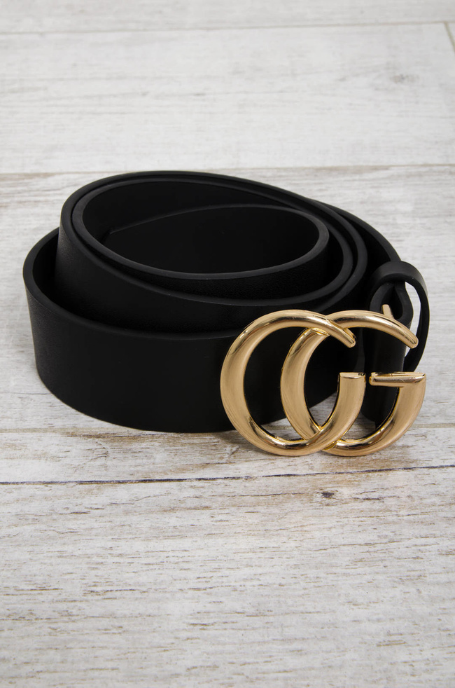 CZARNY SZEROKI PASEK ZE ZŁOTĄ KLMARĄ CG