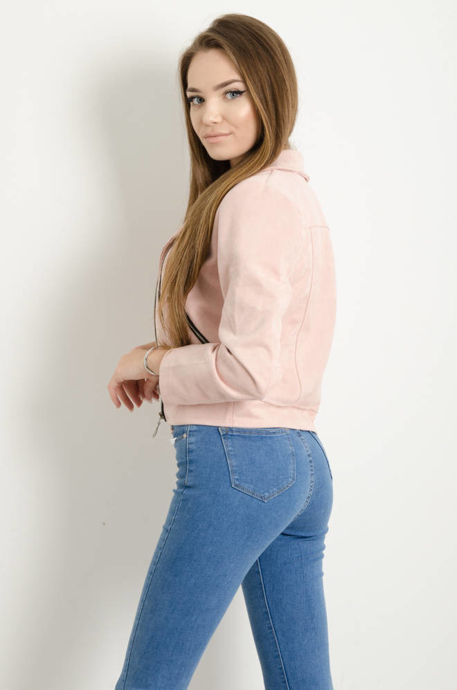 KURTKA PRZEJŚCIOWA RAMONESKA Z IMITACJI ZAMSZU- RÓŻOWA