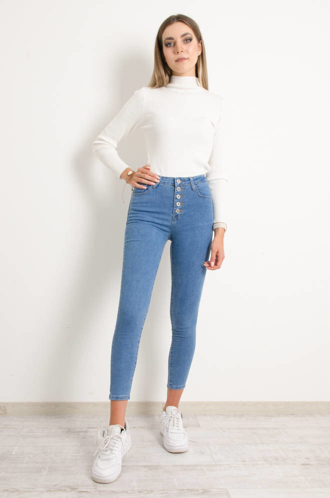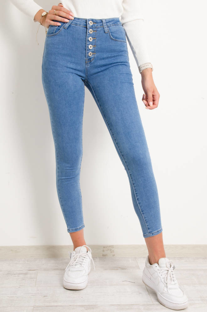 SPODNIE JEANSOWE Z GUZIKAMI- WYSOKI STAN