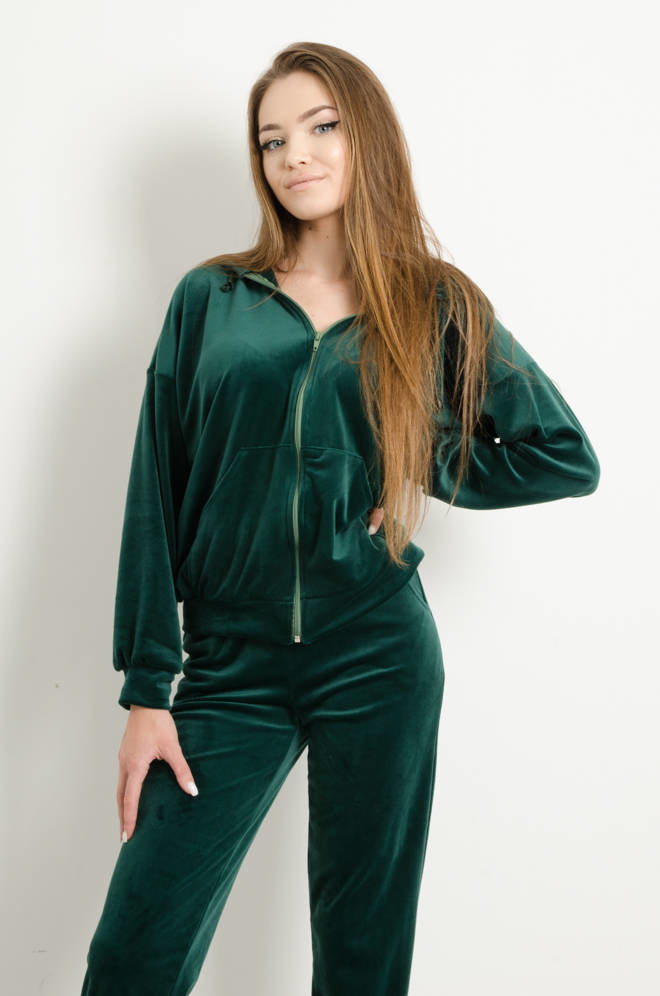 WELUROWY KOMPLET DRESOWY ROZPINANY Z KAPTUREM- ZIELONY