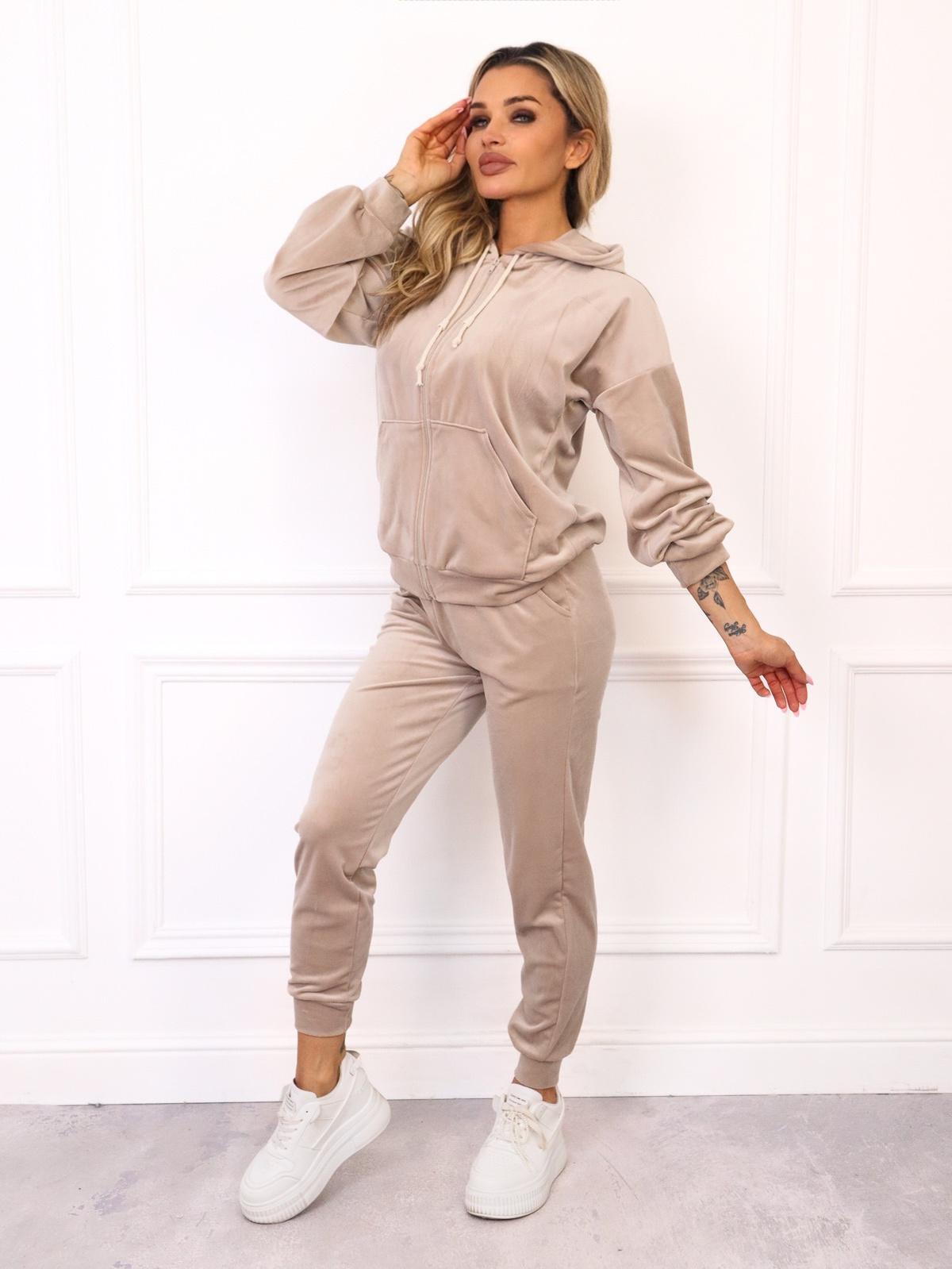 WELUROWY KOMPLET DRESOWY ROZPINANY Z KAPTUREM- BEŻOWY