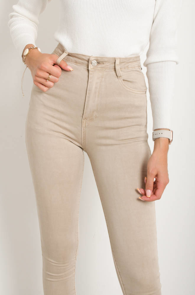 BEŻOWE SPODNIE SKINNY- WYSOKI STAN