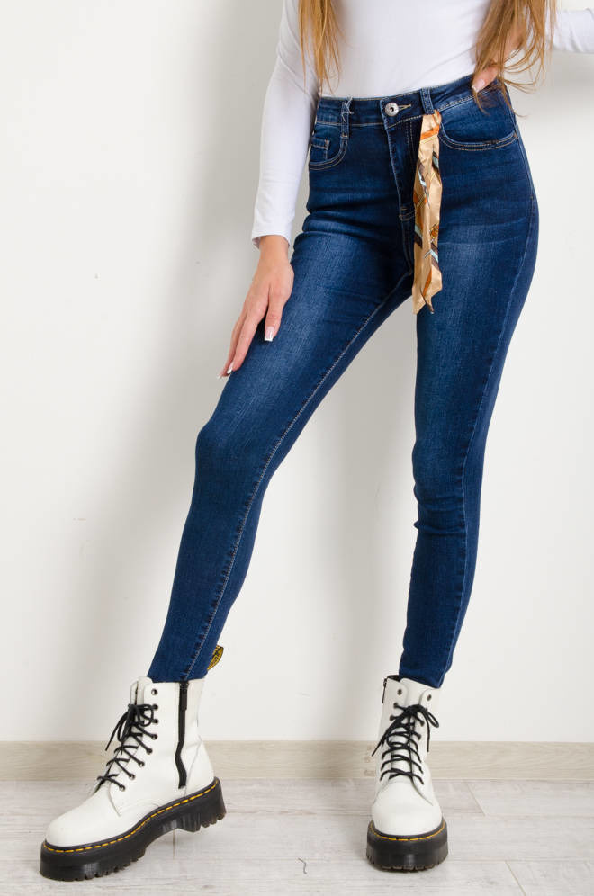 SPODNIE JEANSOWE Z OZDOBNĄ WSTĄŻKĄ- PUSH UP