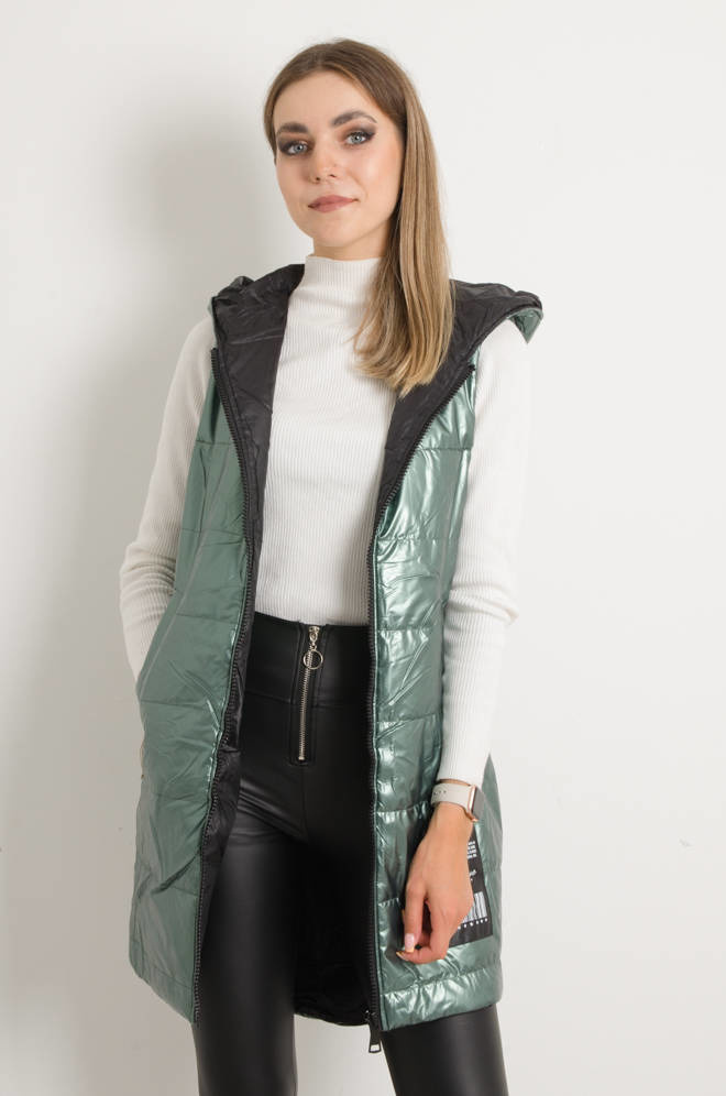 DŁUGA KAMIZELKA Z OZDOBNĄ NASZYWKĄ- ZIELONA
