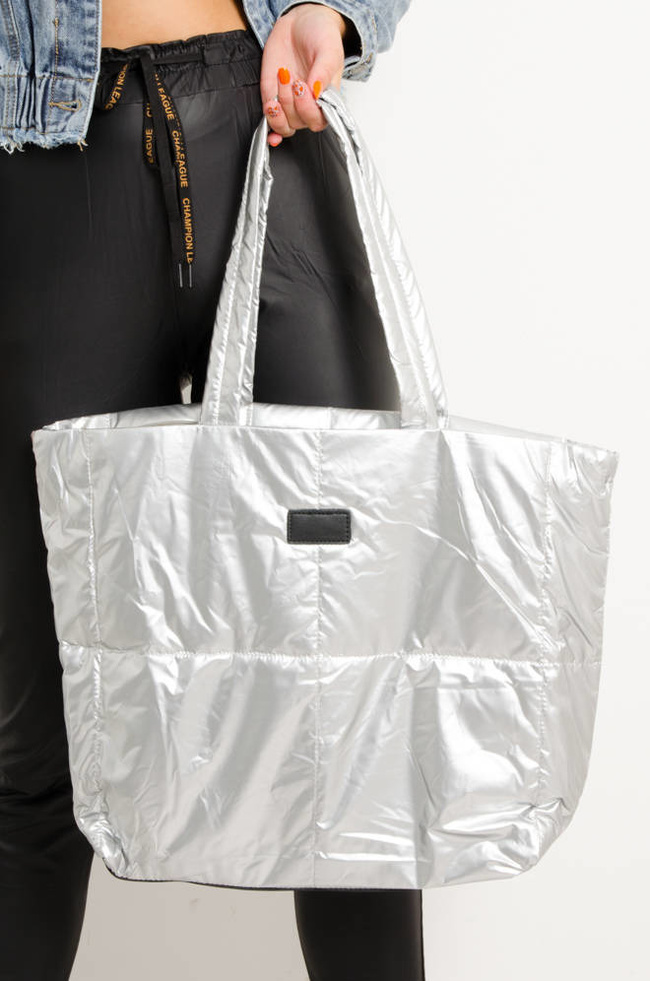 DUŻA PIKOWANA TORBA TYPU SHOPPER- SREBRNA
