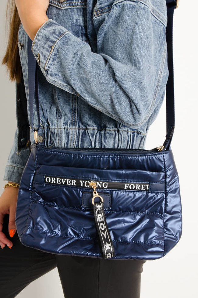 TOREBKA PIKOWANA Z MATERIAŁOWYM PASKIEM- GRANATOWA