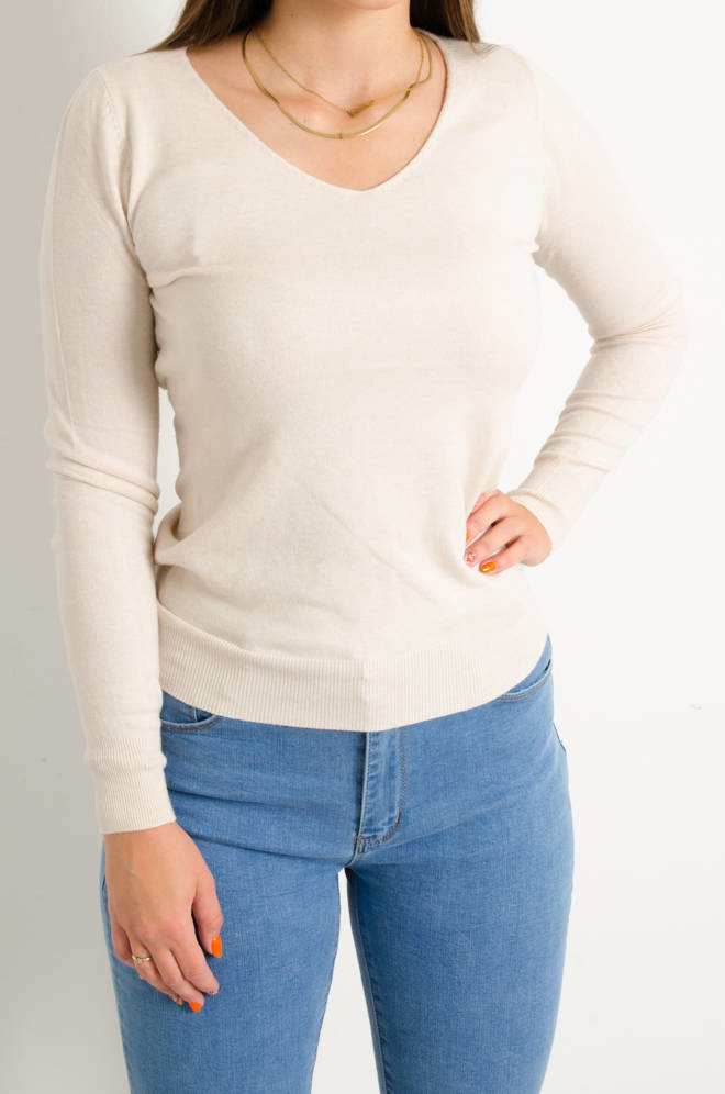 SWETER Z DEKOLTEM W SZPIC- BEŻOWY