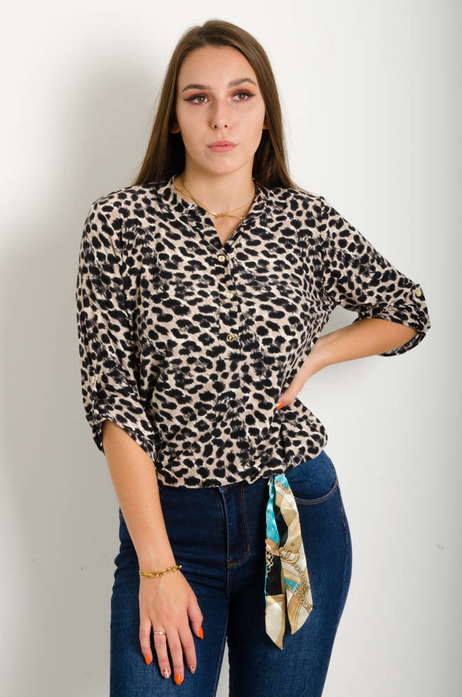 BLUZKA W PANTERKĘ Z OZDOBNYMI GUZIKAM-SZARA