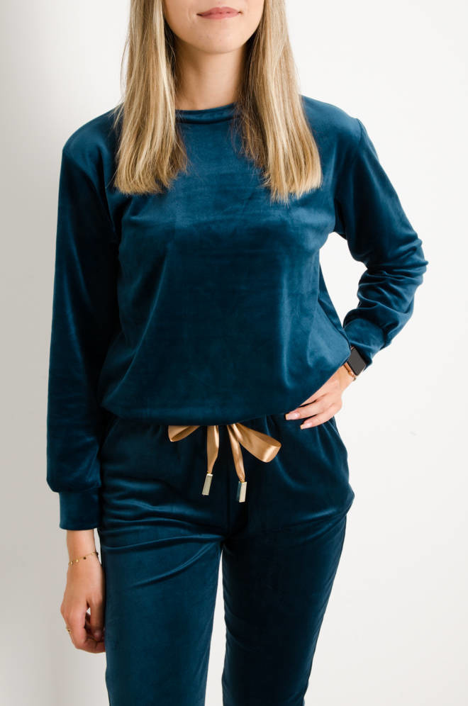 KOMPLET DRESOWY WELUROWY Z OZDOBNĄ NASZYWKĄ- CIEMNY TURKUS