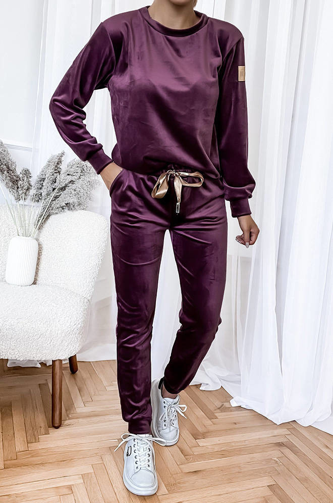 KOMPLET DRESOWY WELUROWY Z OZDOBNĄ NASZYWKĄ-  FIOLETOWY
