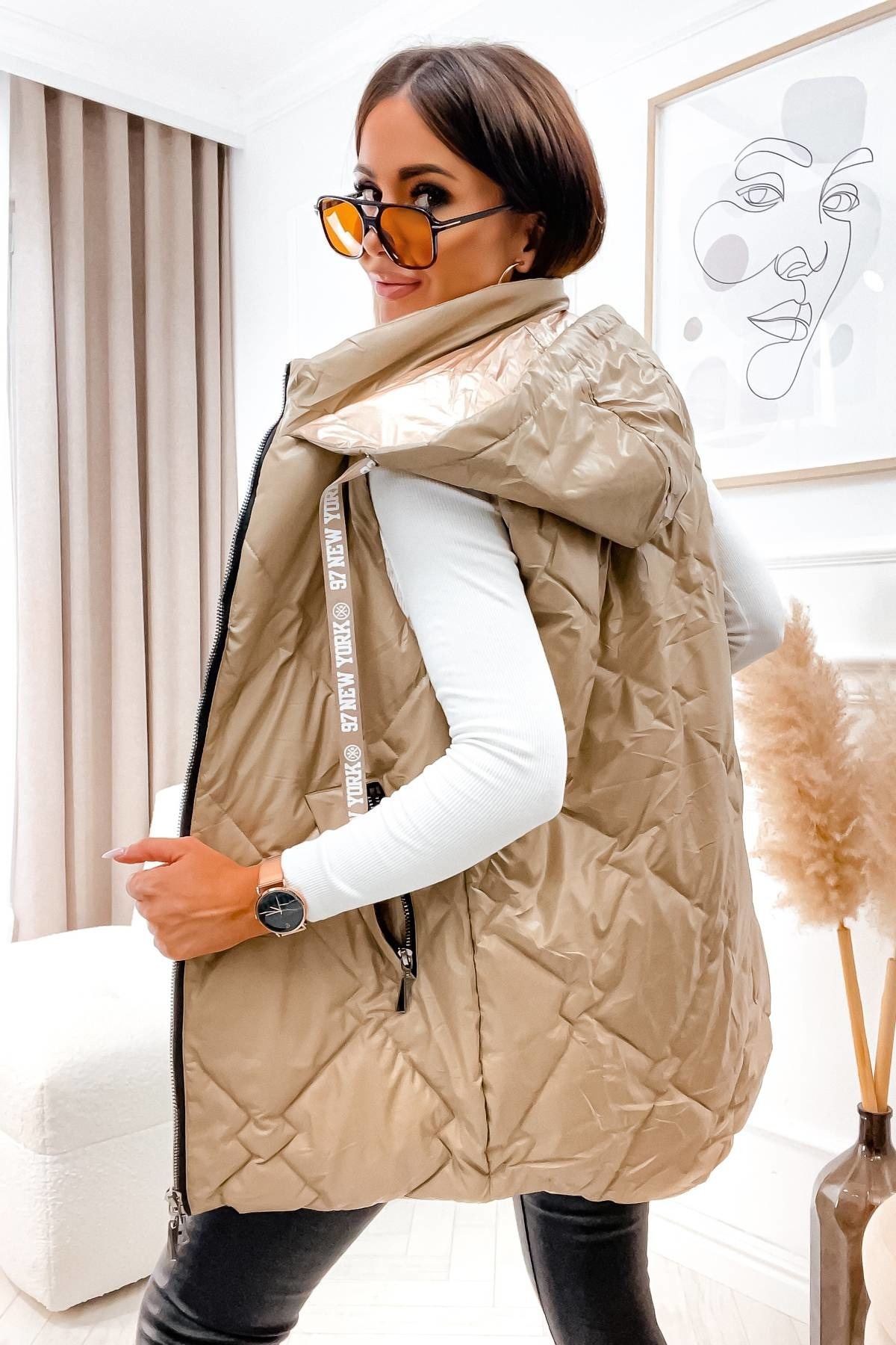 KAMIZELKA PIKOWANA Z KAPTUREM - BEŻOWA