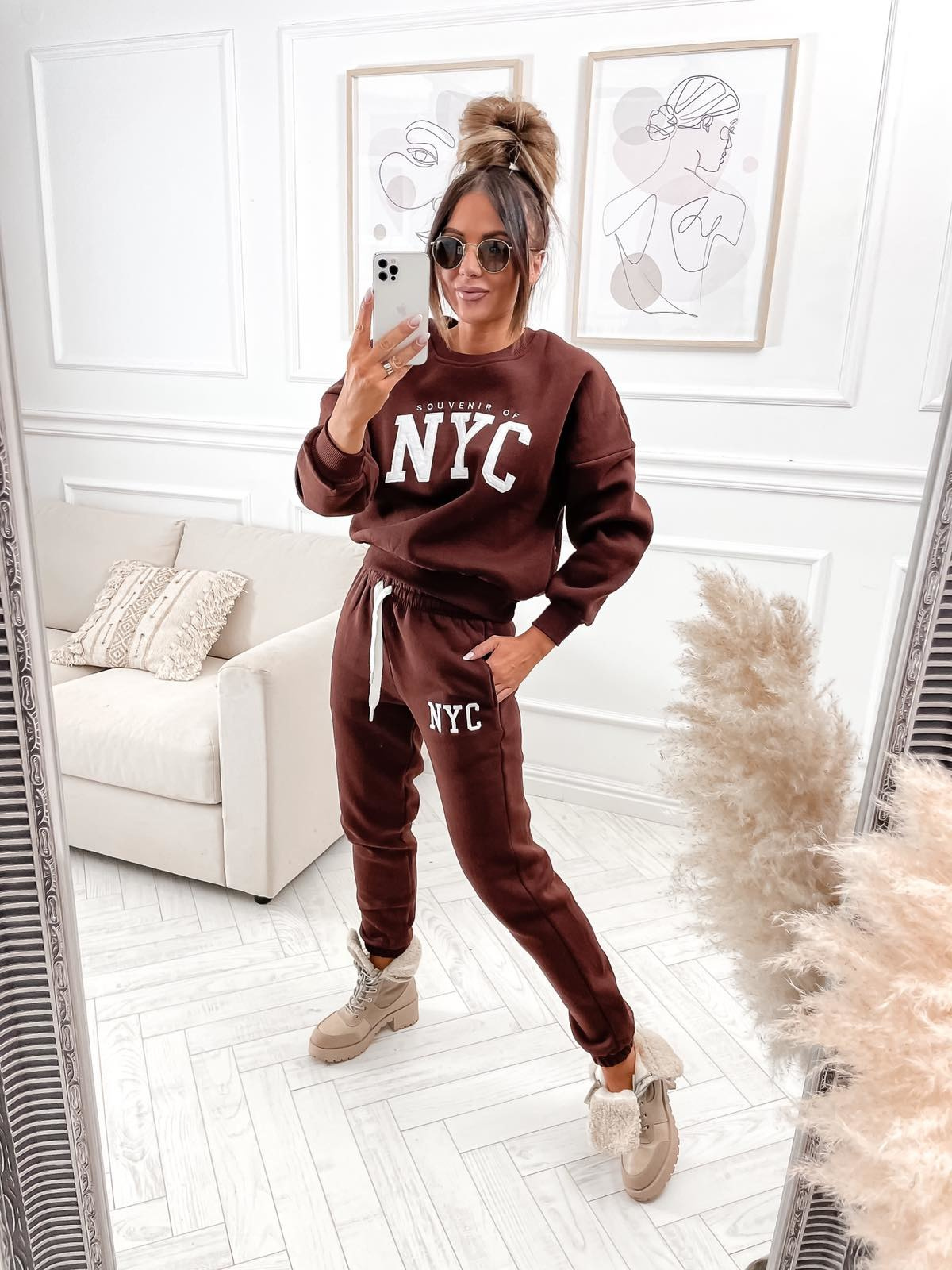 KOMPLET DRESOWY Z OZDOBNĄ NASZYWKĄ- BRĄZOWY
