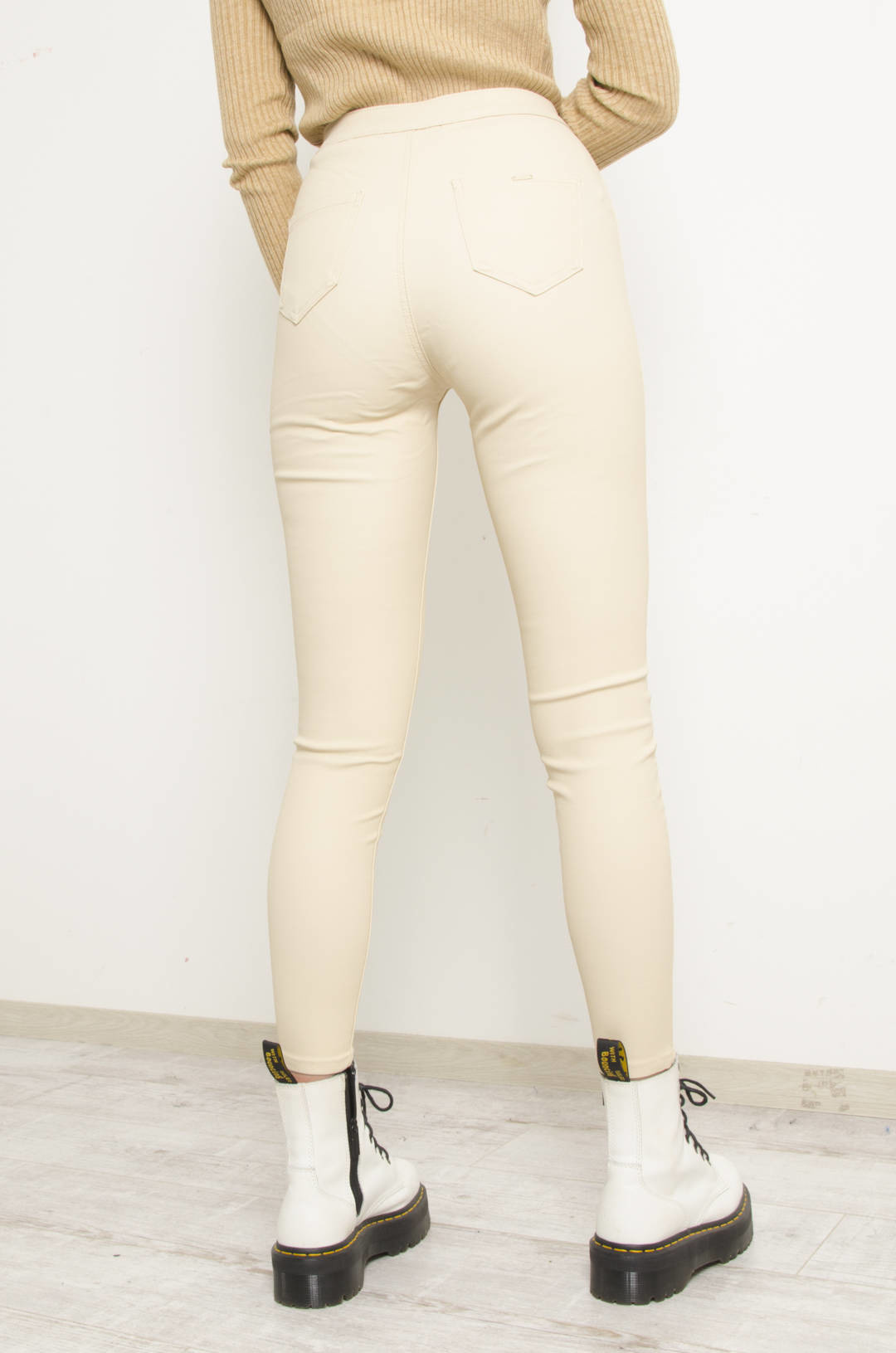 SPODNIE WOSKOWANE Z WYSOKIM STANEM- BEŻOWE