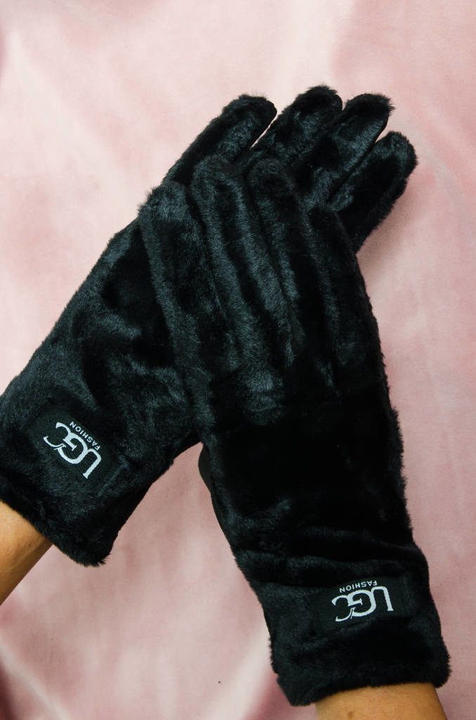 RĘKAWICZKI FUTRZANE Z NASZYWKĄ- CZARNE