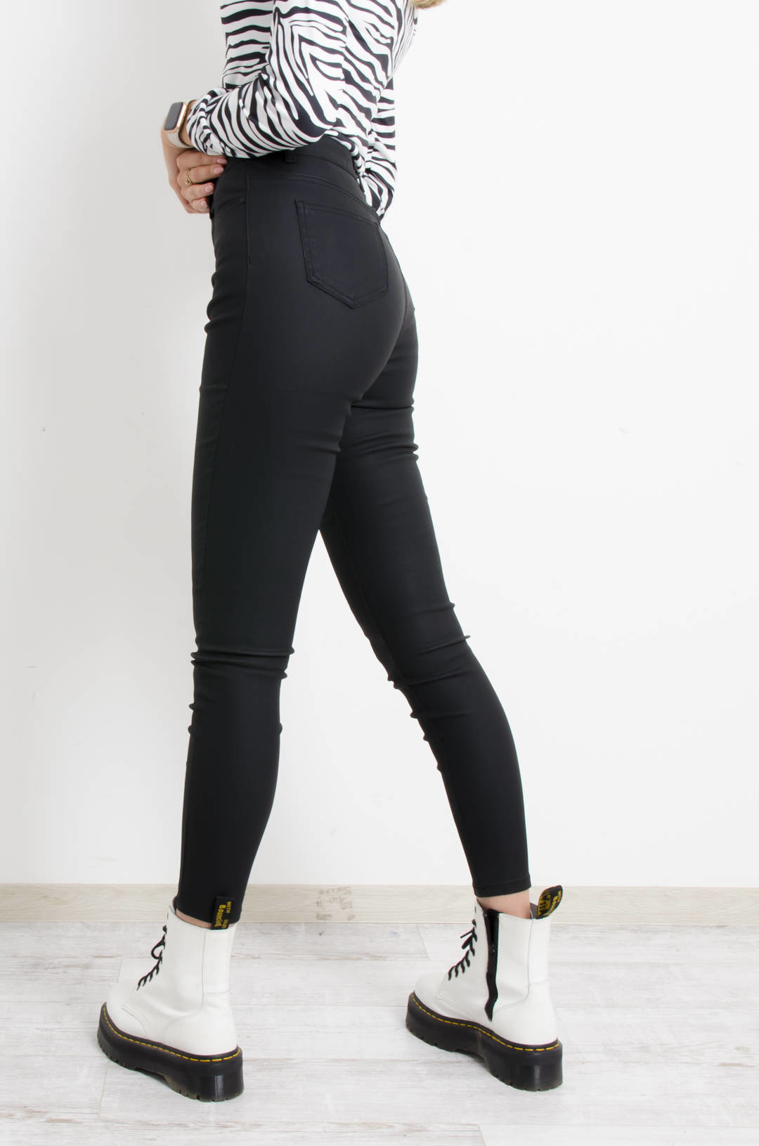 SPODNIE WOSKOWANE Z WYSOKIM STANEM- CZARNE