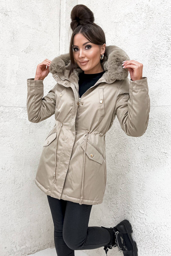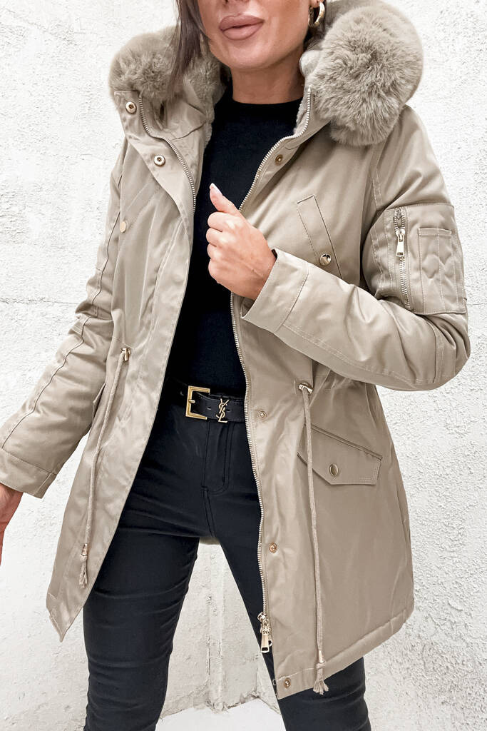 BEŻOWA KURTKA PARKA ZIMOWA