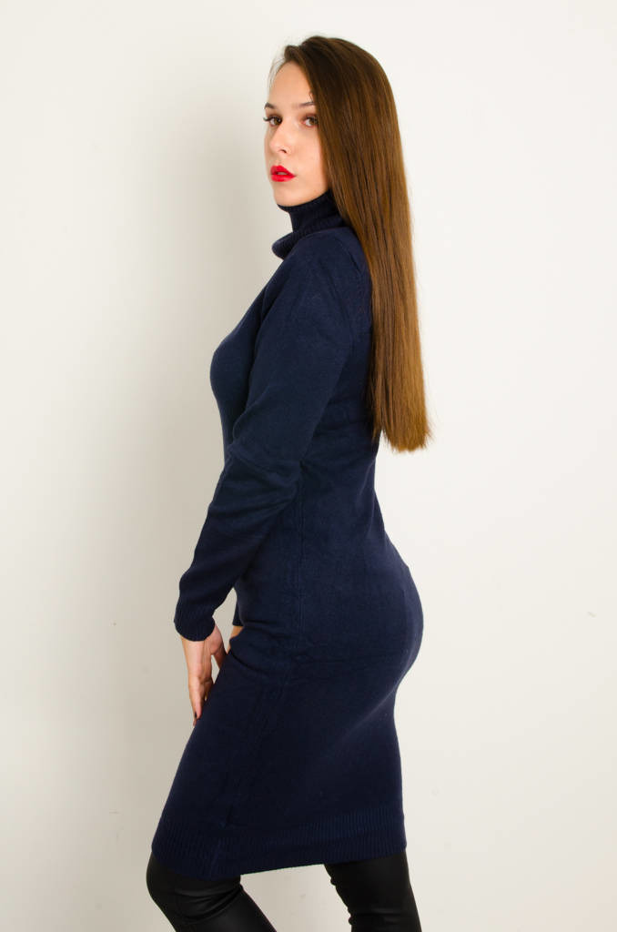 SUKIENKA MIDI SWETERKOWA Z GOLFEM- GRANATOWA