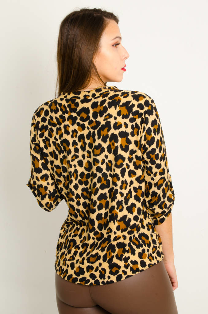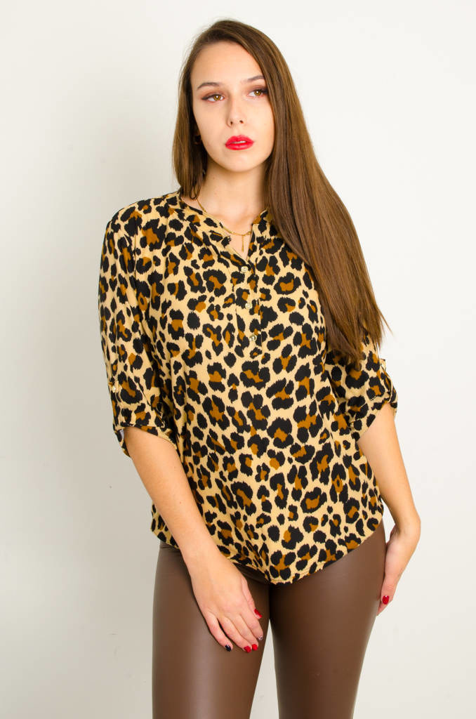 BLUZKA W PANTERKĘ ZAINANA NA GUZIKI- BRĄZOWA