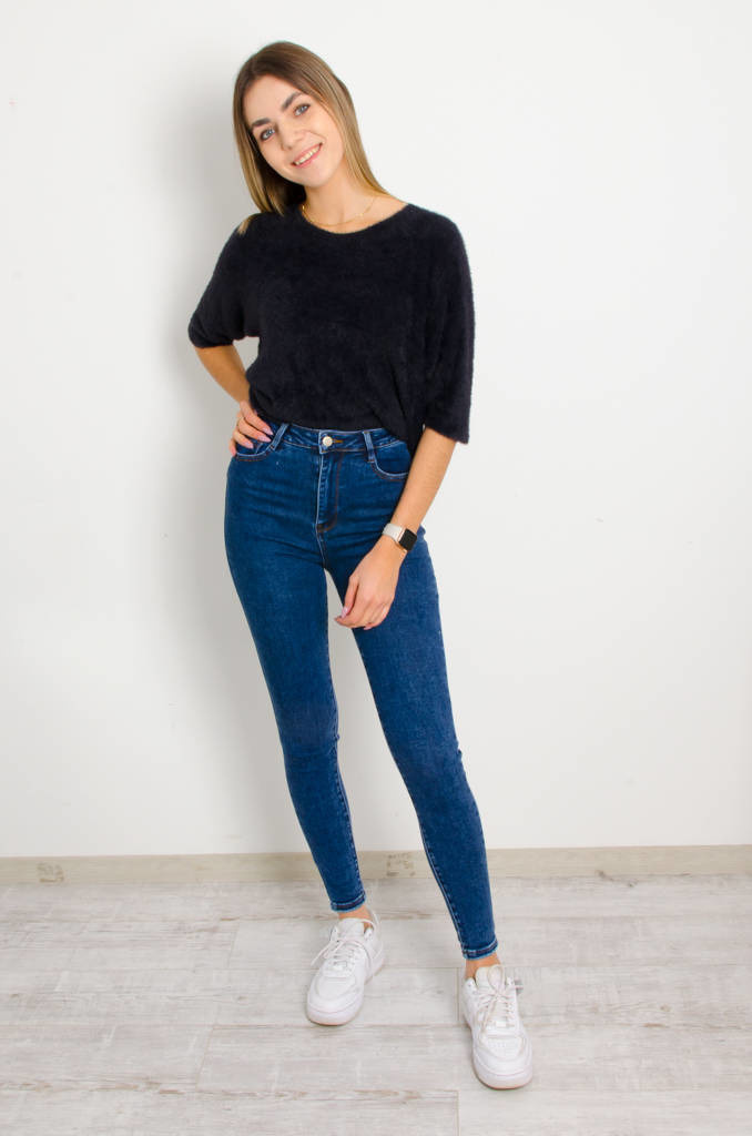 NIEBIESKIE SPODNIE JEANSOWE PUSH UP Z PRZETARCIAMI- BARDZO WYSOKI STAN