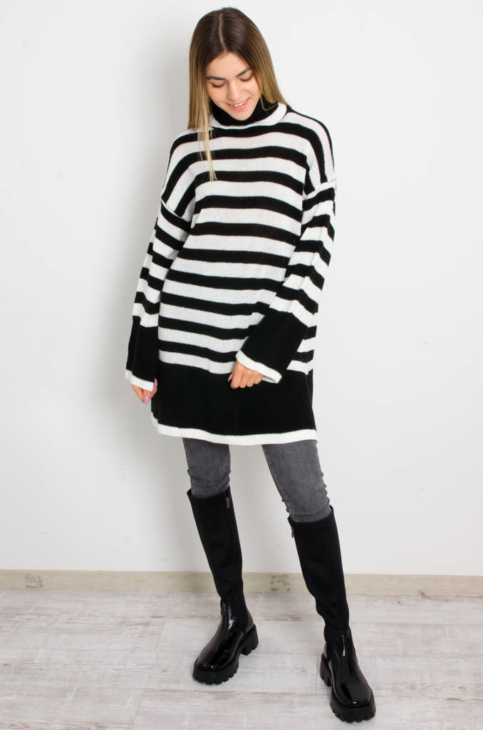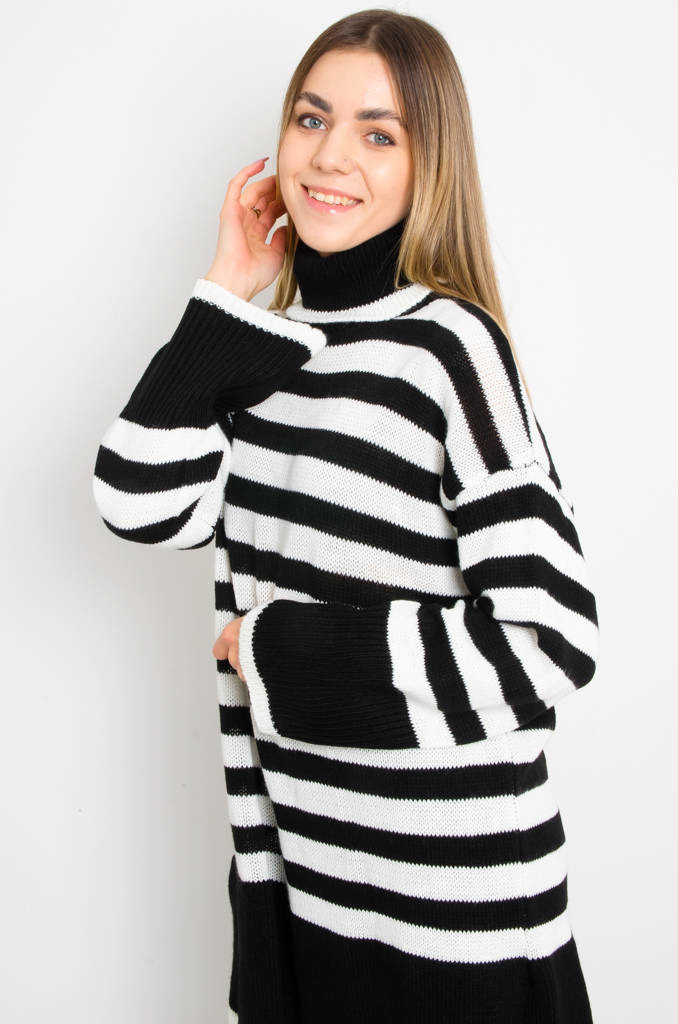 DŁUGI SWETER W PASKI Z ROZCIĘCIAMI- GOLF
