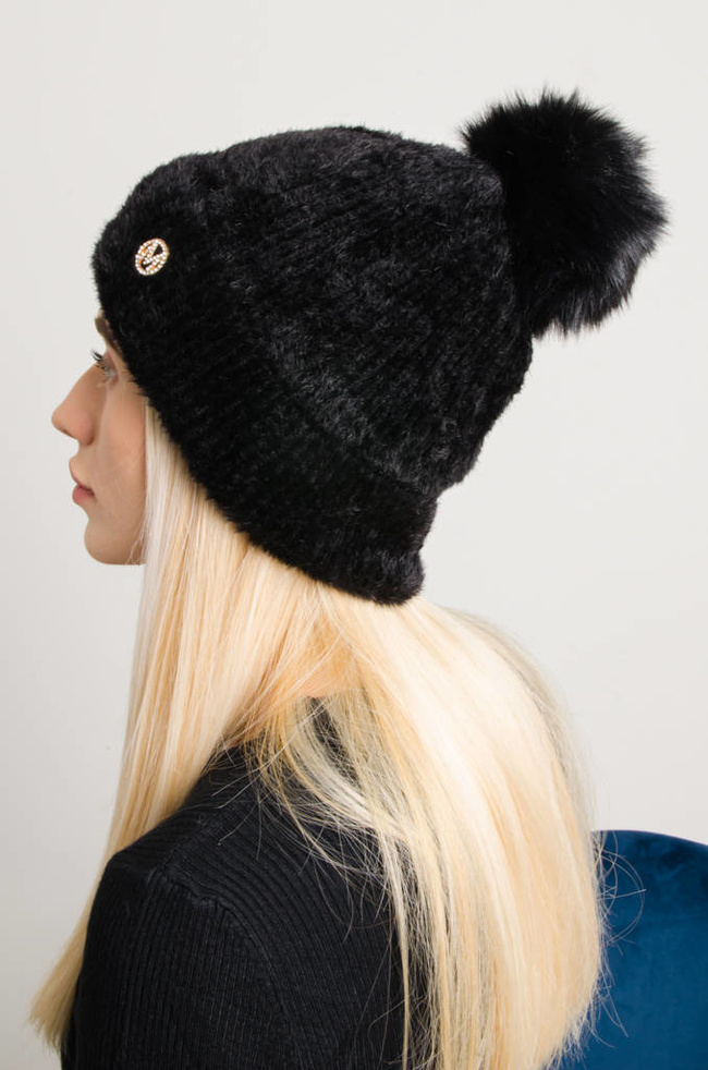 FUTRZANA CZAPKA Z POMPONEM- CZARNA