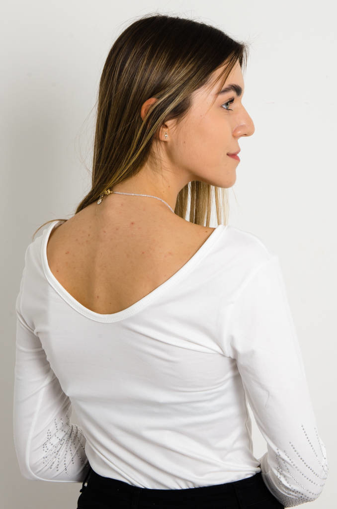 BLUZKA Z OZDOBNYMI CYRKONIAMI NA RĘKAWACH- BIAŁA