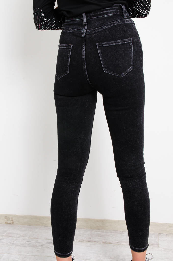 SPODNIE JEANSOWE SKINNY Z BARDZO WYSOKIM STANEM- GRAFITOWE