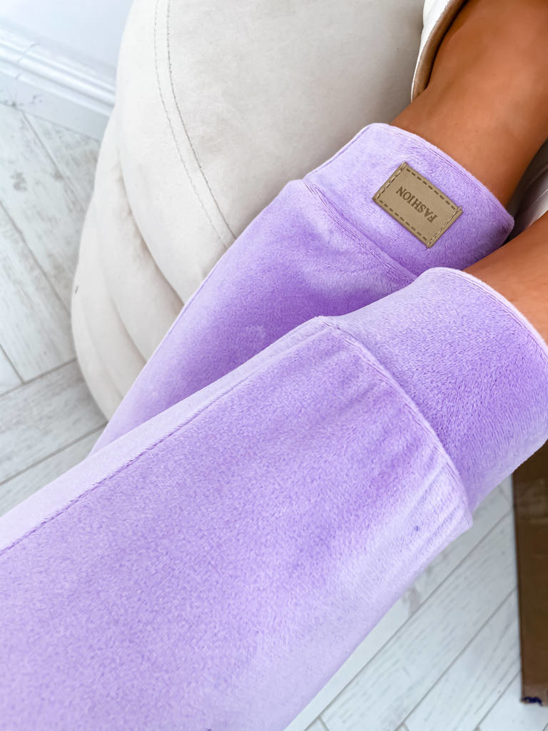 WELUROWY KOMPLET DRESOWY Z OZDOBNYMI NASZYWKAMI- LILIOWY