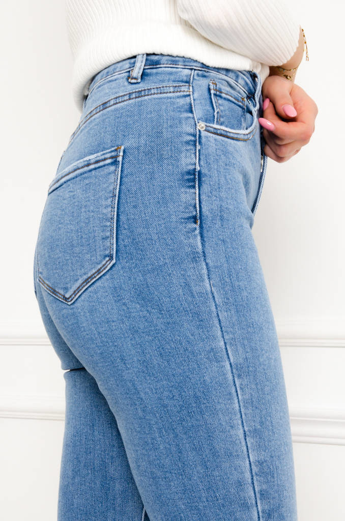 SPODNIE JEANSOWE SKINNY Z BARDZO WYSOKIM STANEM- JASNO NIEBIESKIE