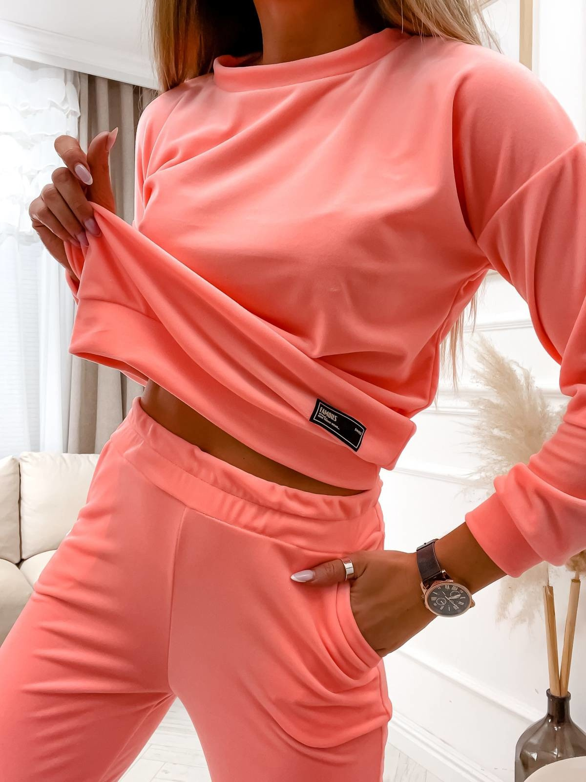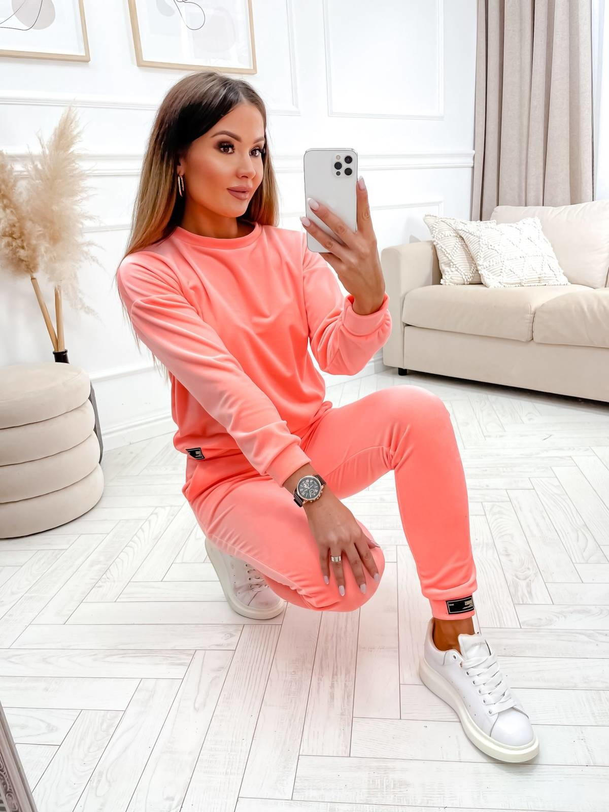 WELUROWY KOMPLET DRESOWY Z NASZYWKĄ- BRZOSKWINIOWY