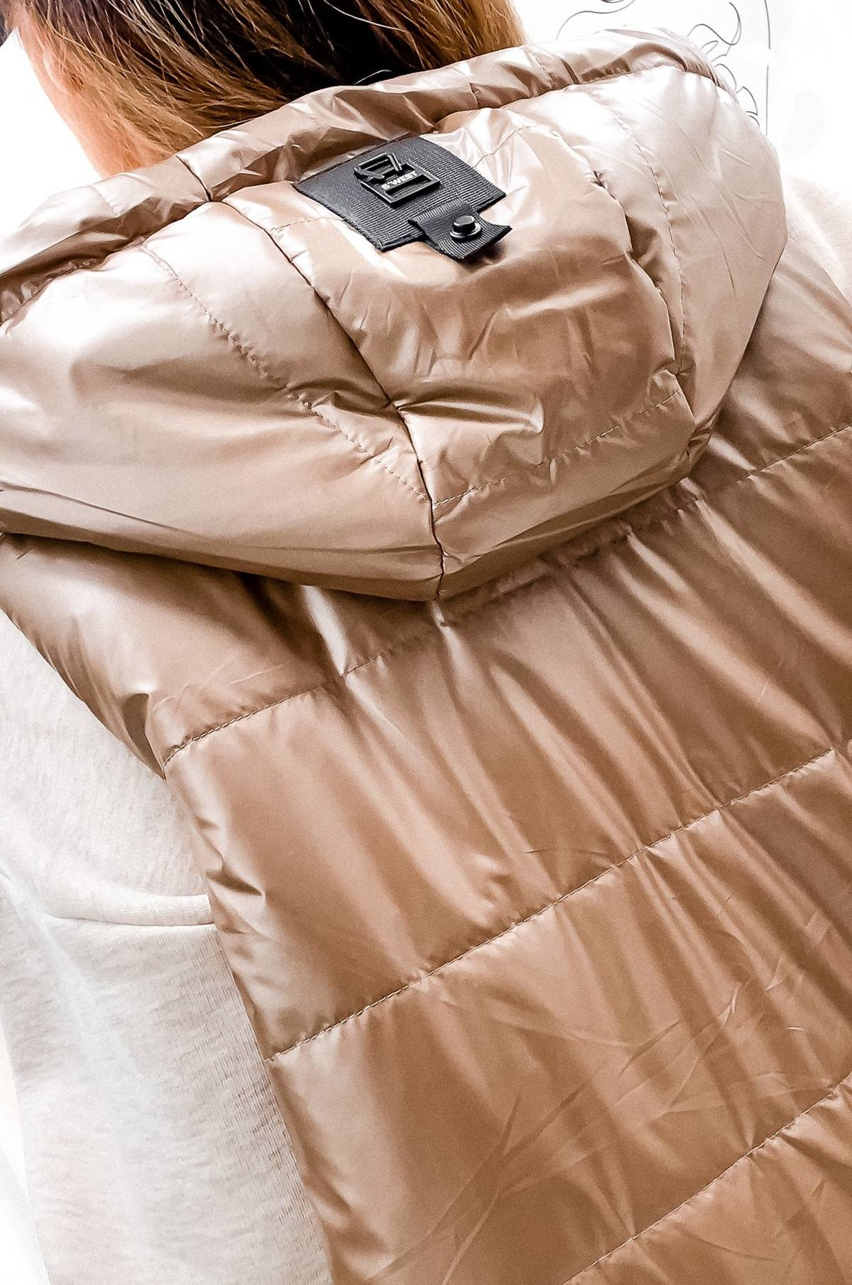 KAMIZELKA ASYMETRYCZNA ZE ZŁOTYMI DODATKAMI- BRĄZOWA