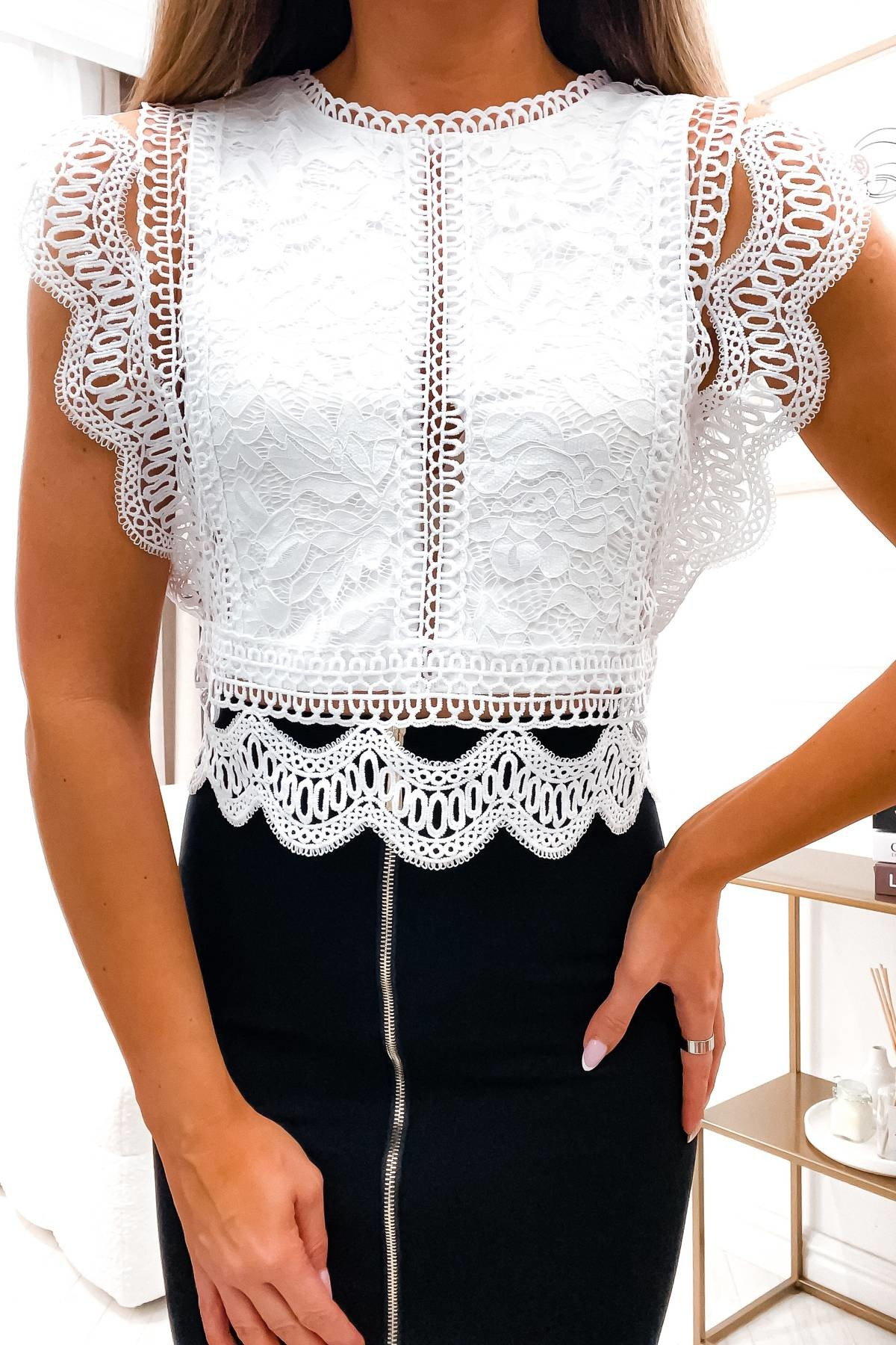 AŻUROWA BLUZKA Z OZDOBNYM ZAMKIEM- BIAŁA