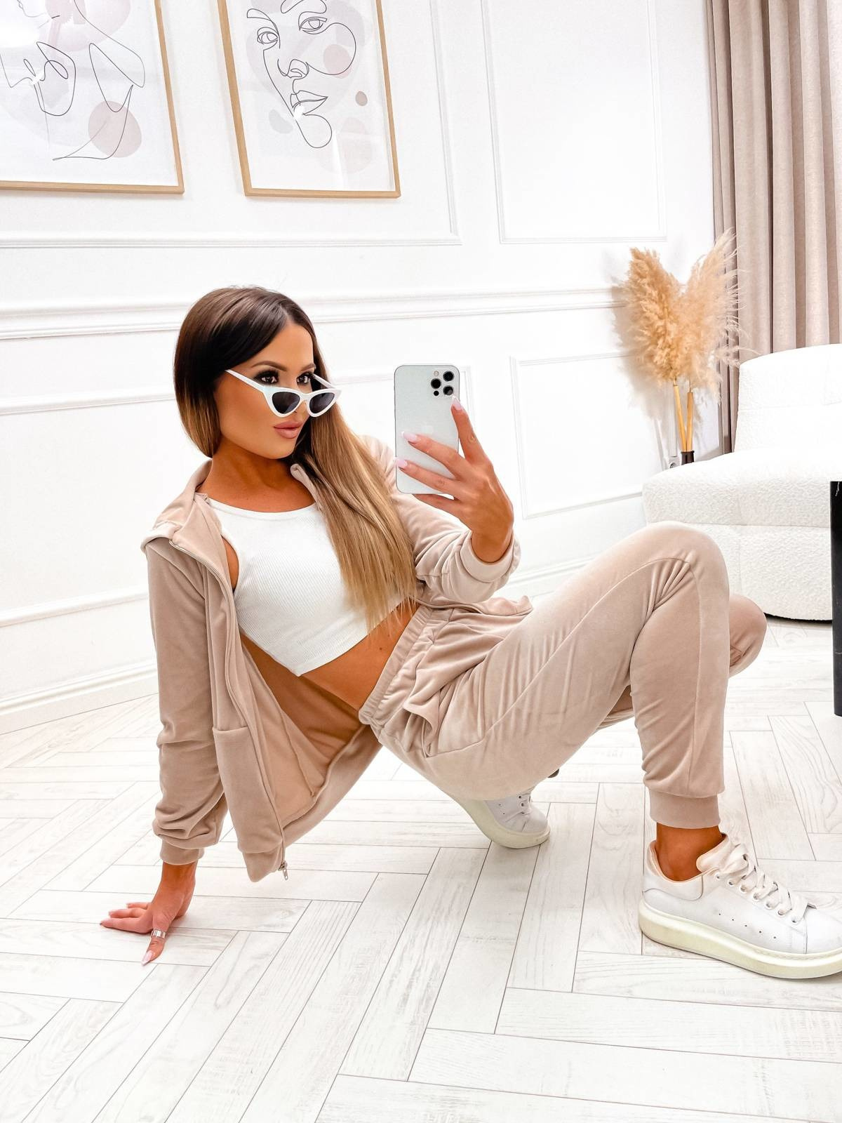 WELUROWY KOMPLET DRESOWY ZAPINANY NA ZAMEK- BEŻOWY